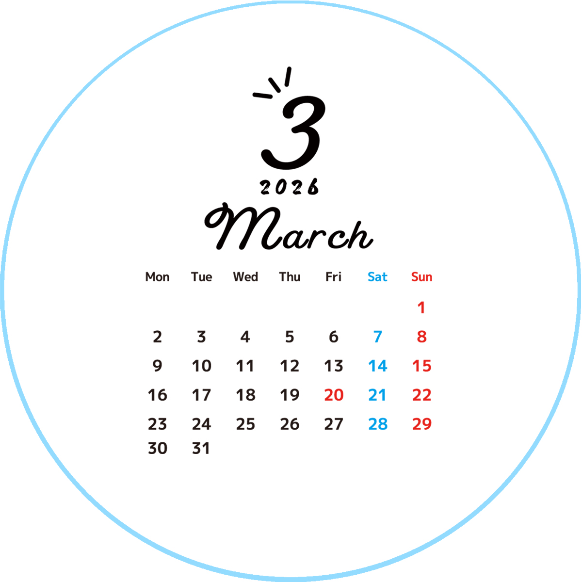 カレンダーの特定の日付けにマークを入れるといった加工が必要な場合は追加料金(300円~)がかかります。