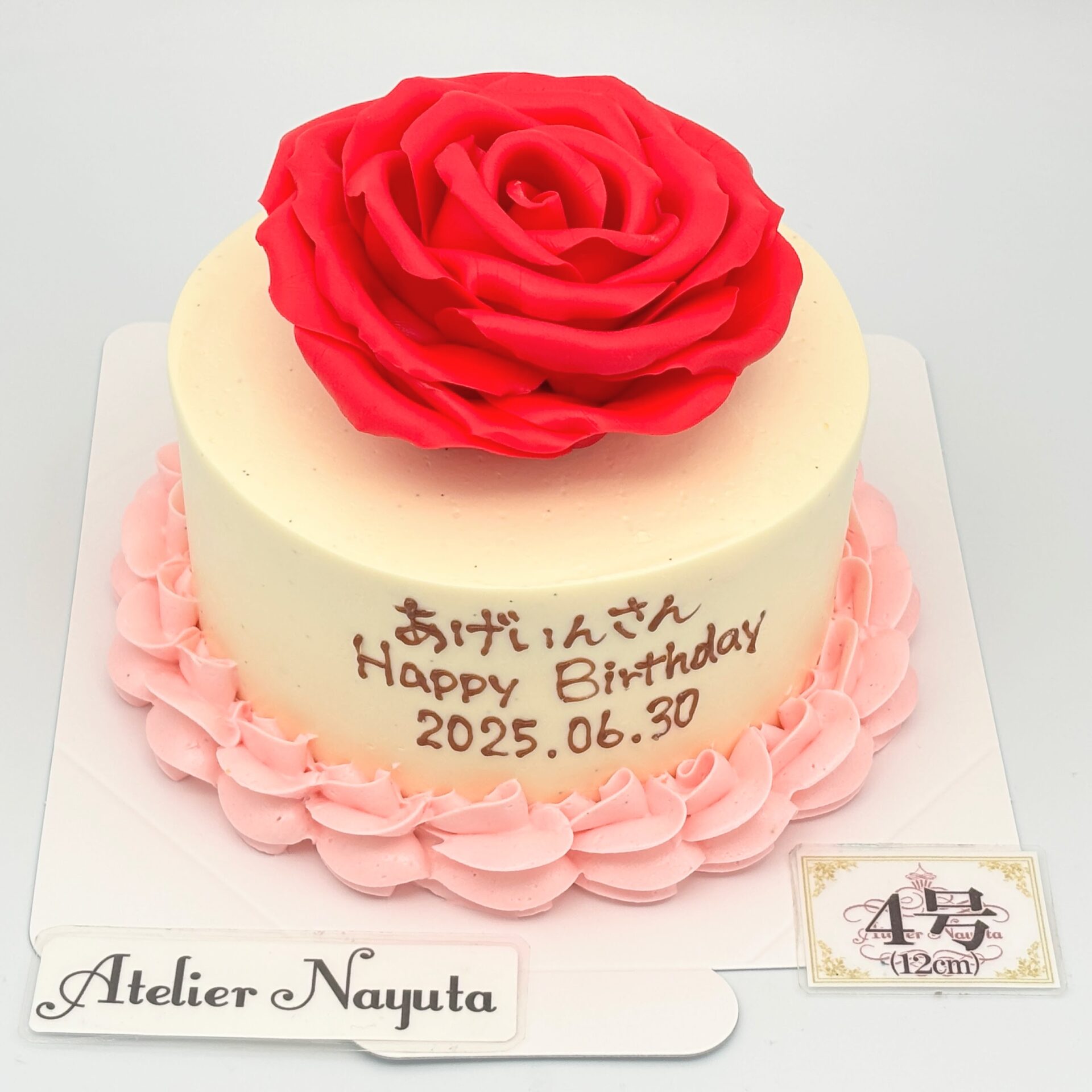薔薇は花びら1枚から手作業で作成するためあまり小さなサイズにできず、たくさん乗せる場合は土台のケーキのサイズを大きくしていただく必要があります